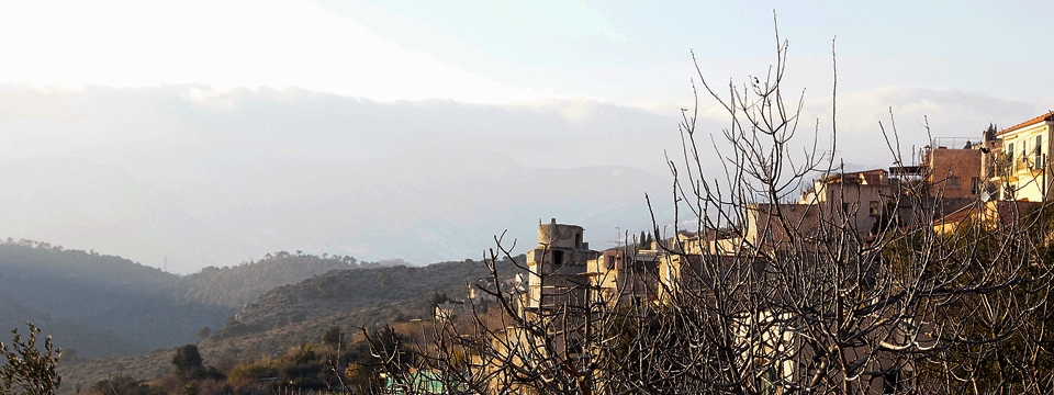 Così mi incammino per queste strade di ciottoli rosati, racchiuse da case di pietra quadrate e senza tetto. Non incontro nessuno, solo il silenzio. Poi urla il vento all’improvviso, una raffica più forte delle altre vuol farsi sentire, ora qualche cane abbaia in lontananza. Tutto è immobile, è come se fossi stata catapultata in un improbabile miscuglio tra una poesia di Montale e un film di Sergio Leone… [le viuzze che seguono i ciglioni, discendono tra i ciuffi delle canne e mettono negli orti, tra gli alberi dei limoni…]